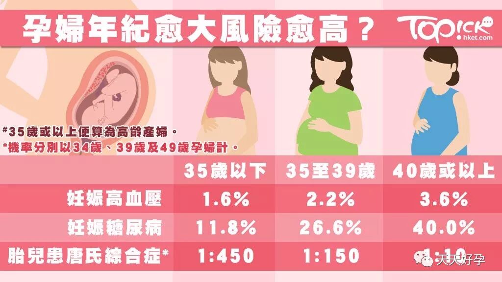 不过,有关数据还是显示,孕妇年纪越大,风险越高。40岁以上孕妇所生产的胎儿,患唐氏综合症的几率上升了45倍,至10:1,也就是说十个胎儿里面就有一个唐氏儿童!